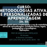 Curso: Metodologias Ativas e Personalizadas de Aprendizagem – 2a. Ed. 25 de setembro de 2025 2:00 pm – 5:00 pm Local: Espaço de Apoio ao Ensino e Aprendizagem Categorias: Cursos Tags: docência, metodologias ativas, oficina Curso Leia Mais